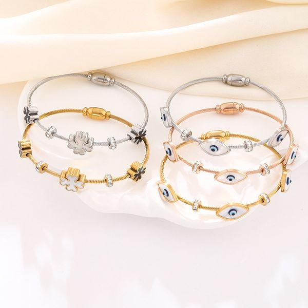 hot selling 2025 new fashionable stainless steel white shell black agate bracelet blue eye/flower bangle accessory simple high-end routine jewelry