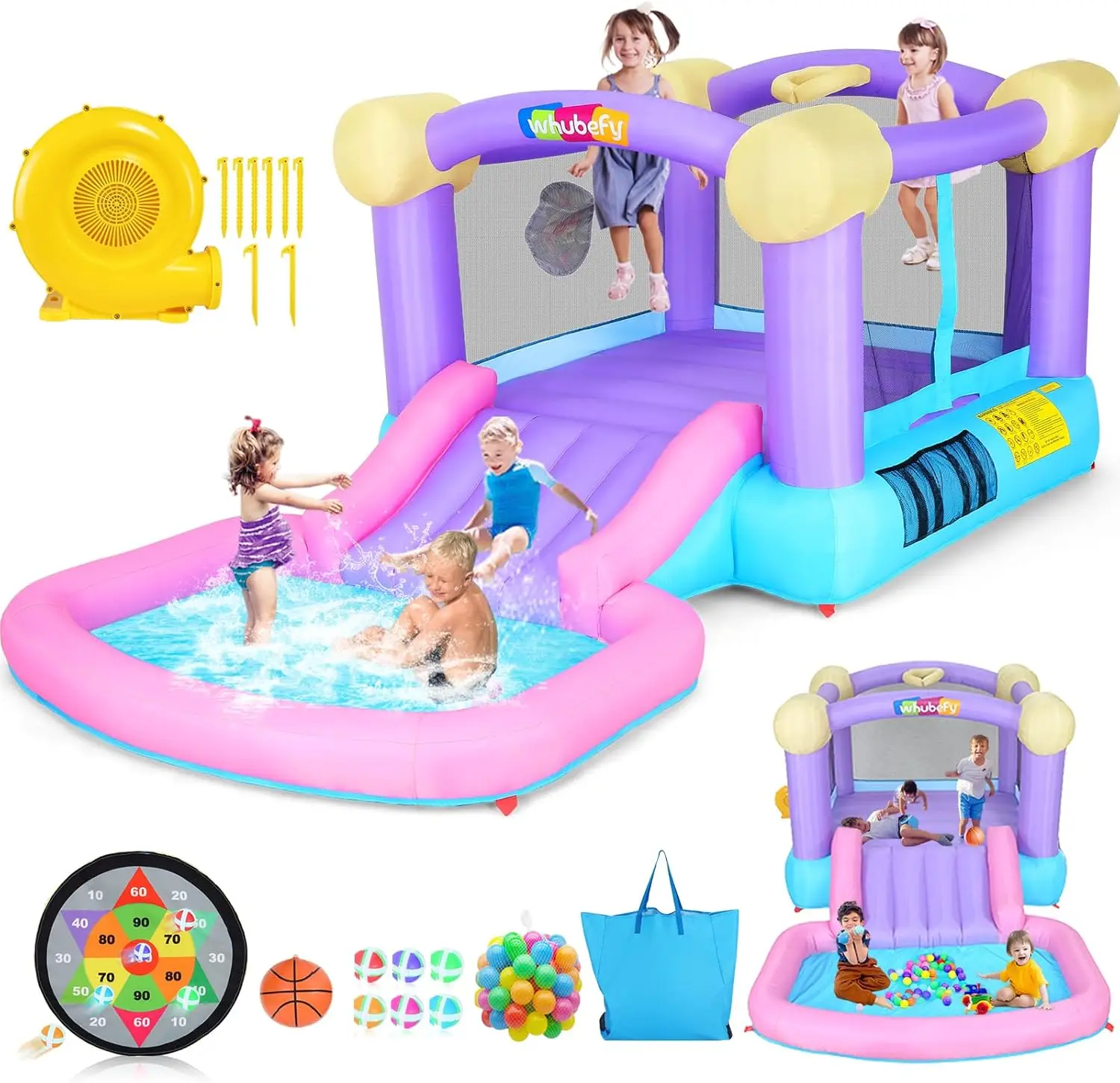 Inflatable Bounce House for Kids 3-6 with Ball Pit & Dart Board – Toddler Water Bounce House Jump ‘n Slide Park for Indoor Outdo