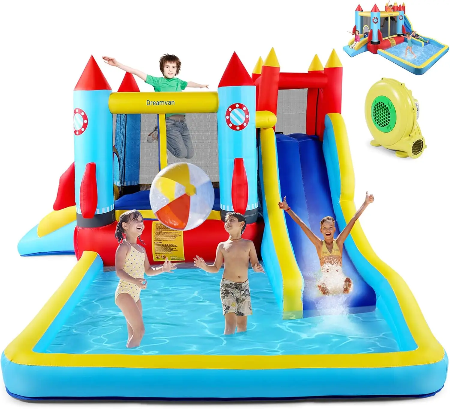 Inflatable Bounce House with Blower, Jumping Castle with 2 Slides, Jump and Splash Adventure Bounce House or Water Slide All in