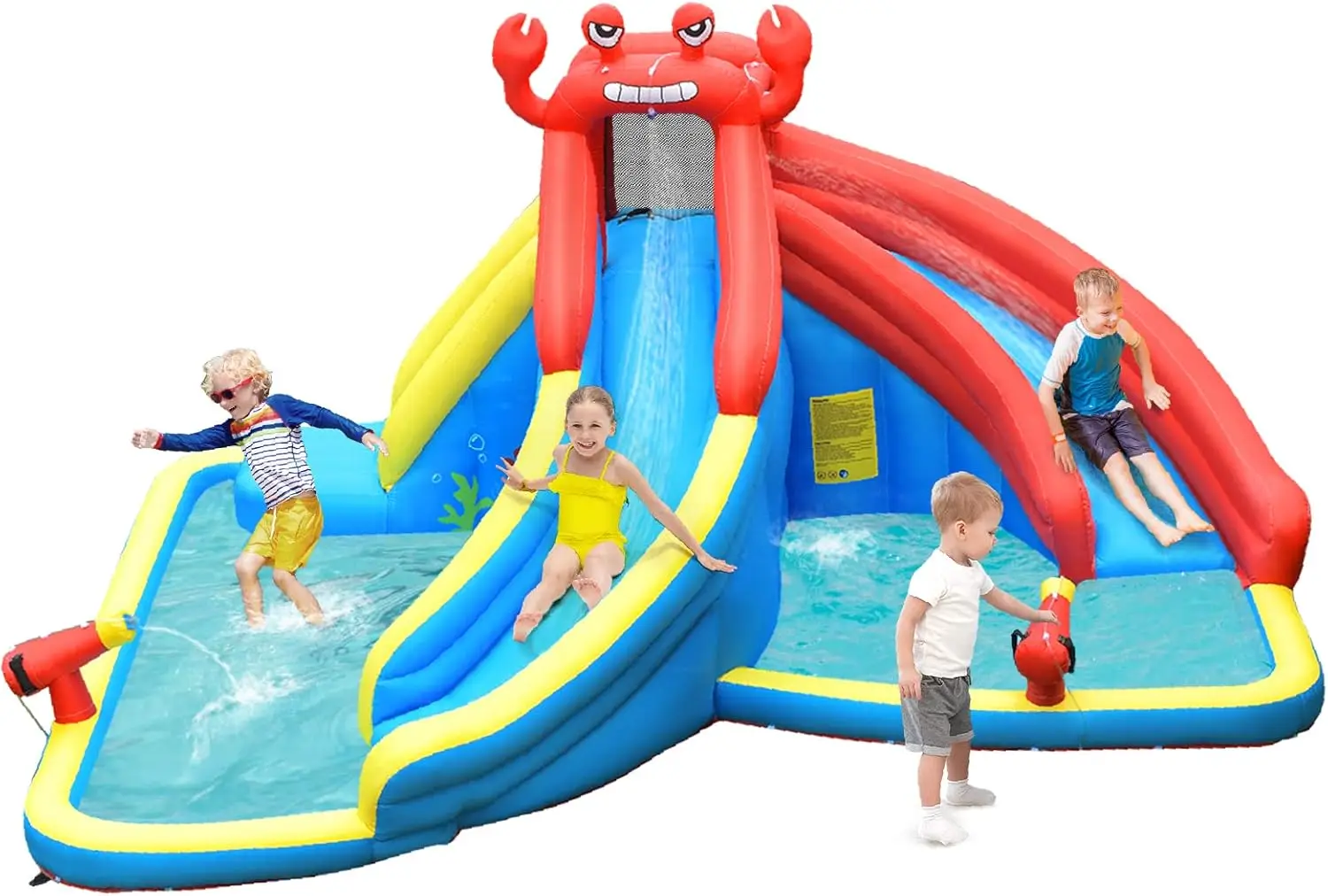 Inflatable Water Slide, Crab Theme Blow Up Water Park Bounce House for Backyard, Climbing Wall & 2 Slides, Indoor Outdoor Waters