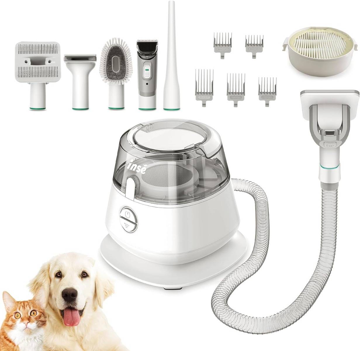 INSE P20 Pro Dog Grooming Kit: Suction Vacuum for 99% Pet Hair, Large Dust Cup, Includes Clippers and 5 Tools for Shedding Pet Hair.