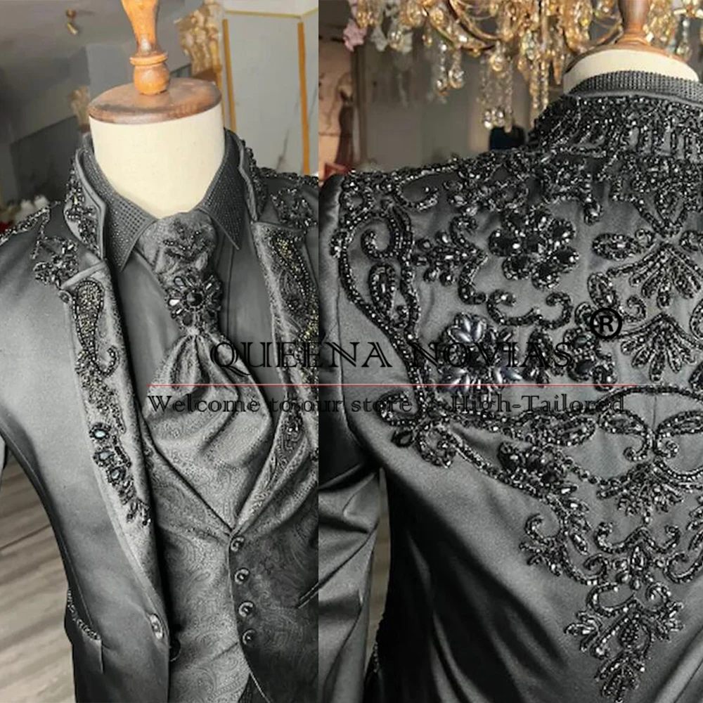 Italian Design Groom Wedding Tuxedo Rhinestone Beaded Prom Blazer Customized 3-Piece Floral Men’s Suits Formal Occasion Dresses