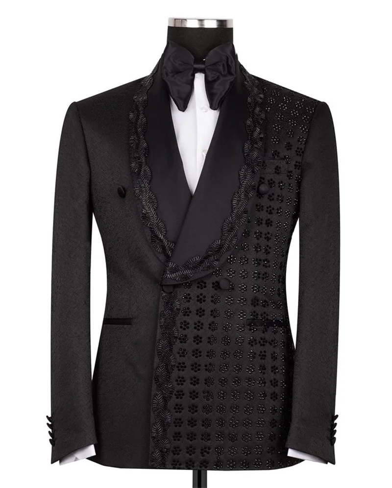 Jacquard Men Suit Set 2 Pieces Beaded Blazer+Pants Trousers Formal Office Jacket Coat Wedding Groom Tuxedo Customized Outfit