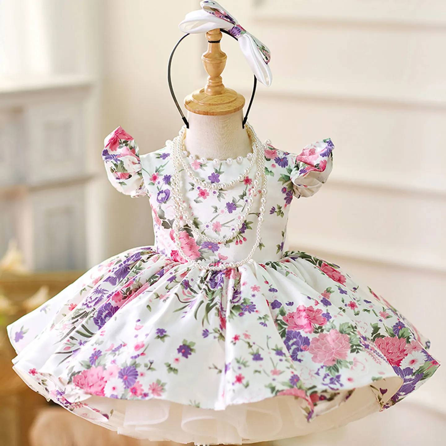 Jill Wish Elegant Lilac Puffy Sleeve Flower Girl Dress Knee Length Arabic Princess Baby Wedding Birthday Party Ball Gown J050