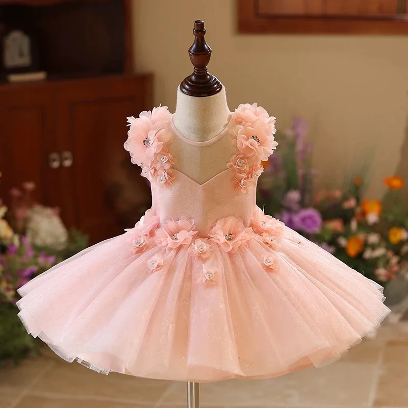 Jill Wish Elegant Pink Girl Dress with Handmade Flowers Princess Toddler Kids Wedding 1st Birthday Pageant Party Ball Gown J417