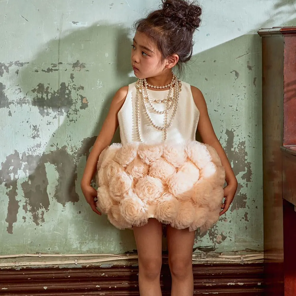 Jill Wish J105 Mini Dubai Champagne Flower Girl Dresses Satin Handmade Flowers Baby Kids Birthday Wedding Party Gown Pageant