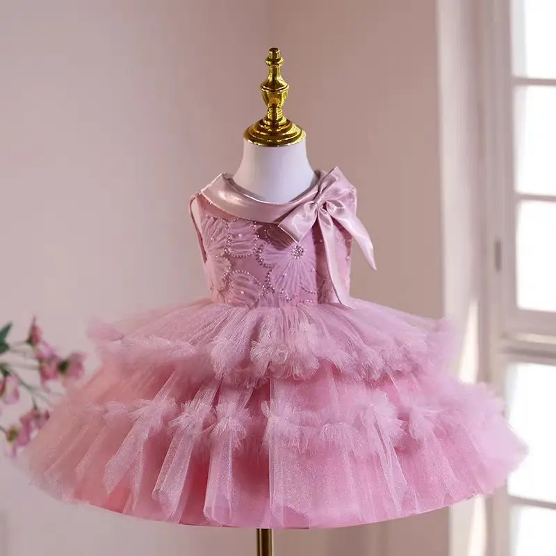 Jill Wish Pink Sleeveless Flower Girl Dress Knee Length Tiered Lace Princess Kids Wedding Birthday Party Holiday Prom Gown J541