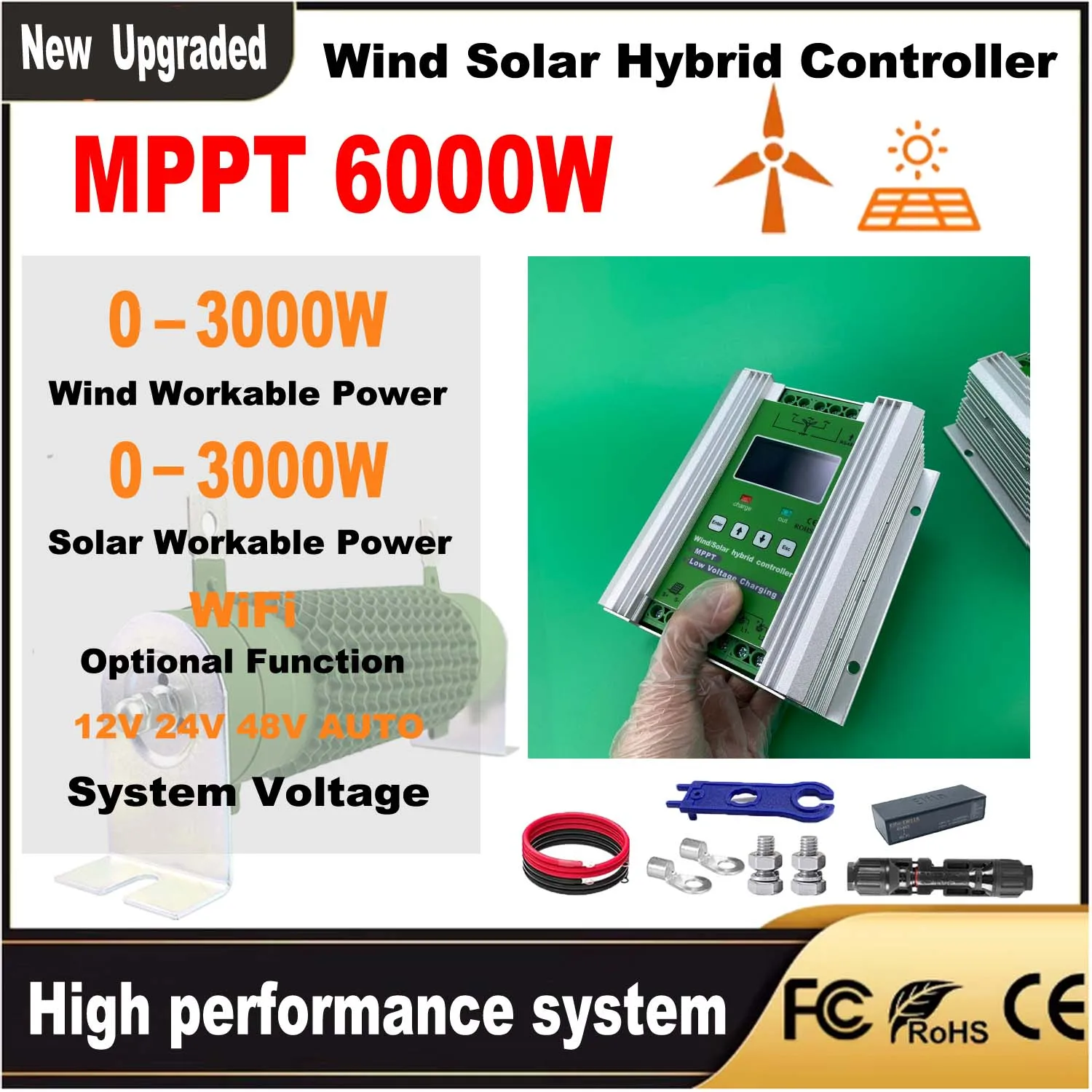 JNGE 12V 24V 48V 3000W Wind Solar Hybrid Charge Controller MPPT Charge for Solar Panel Wind Turbine Lithium Lead Acid Battery