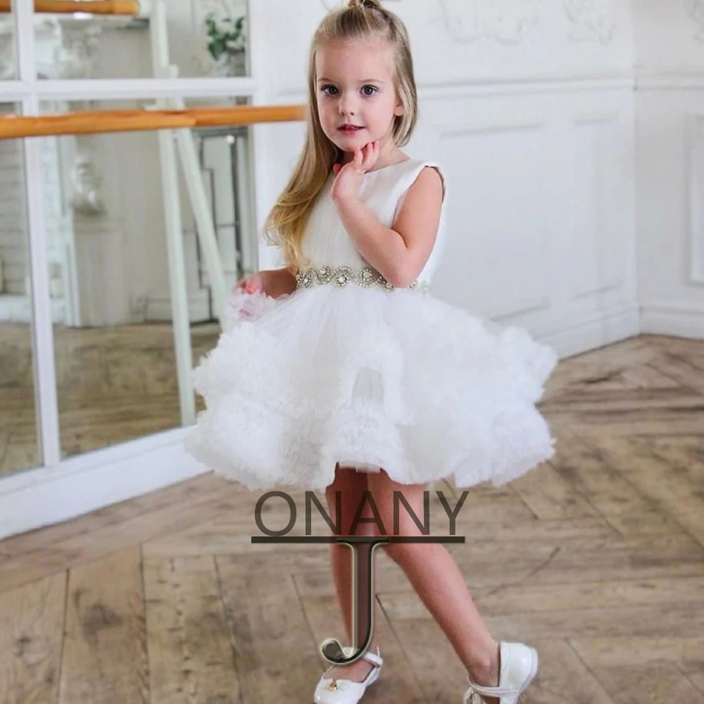 JONANY Cute Tiered Flower Girl Dresses with Crystal Belt Aline Birthday Pageant Gown Communion Robe De Demoiselle Baby