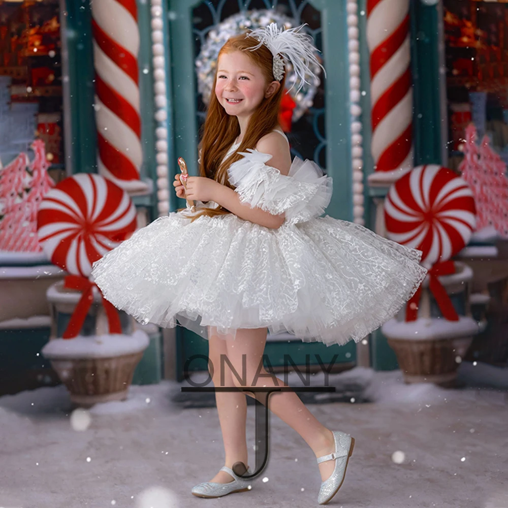 JONANY Lovely Off The Shoulder Flower Girl Dress Sweetheart Lace Tulle Mini Ball Gown Little Girl Princess Roupas De Florista