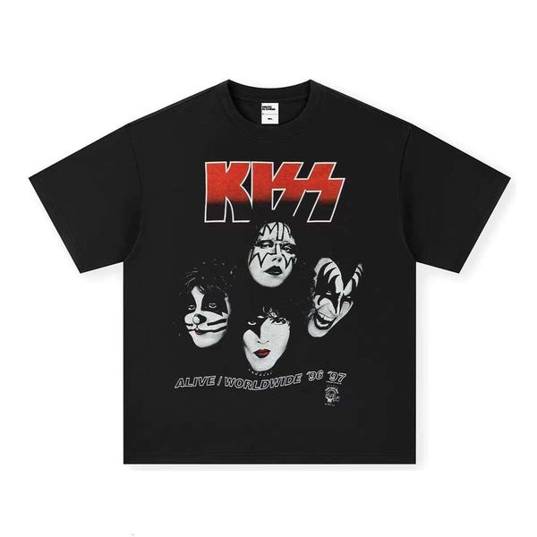 Kiss Rock Band Sweatshirt 100% Cotton American Crossover Print Short Sleeve Crew Neck Unisex T-Shirt