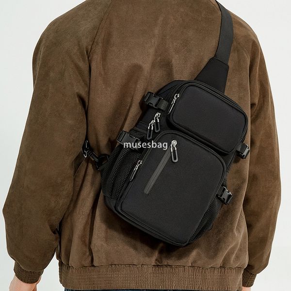 Korean fashion chest bag Men's close-fitting oblique shoulder bag outside riding backpack mobile phone bag men's Japanese shoulder bag