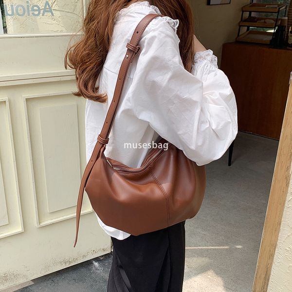 Korean Spring/Summer New Vintage Minimalist Folded Dumpling Bun Instagram Women's Bag Trendy Daily Shoulder Bag Diagonal Cross Horn Bun