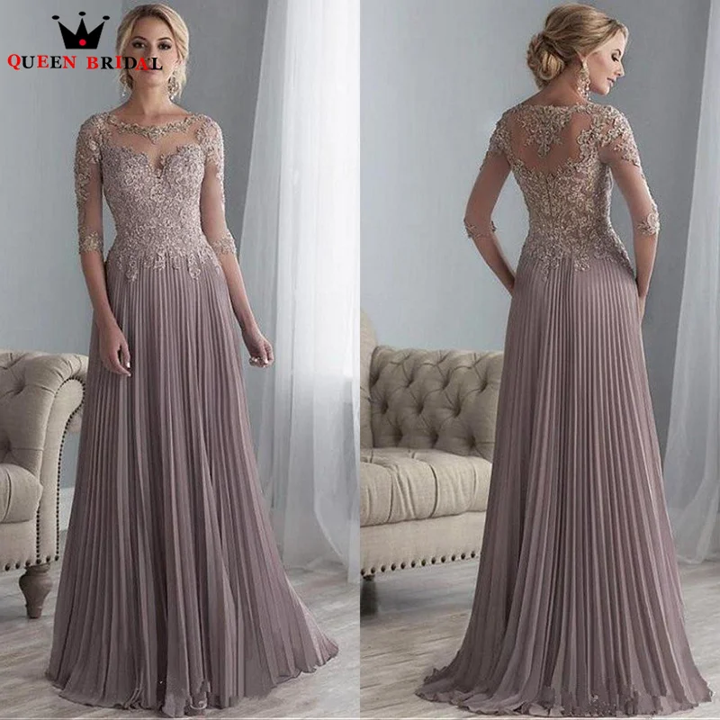 Lace Appliques Mother of the Bride Dresses A-LINE Three Quarter Mother Formal Wedding Party Dress Long Chiffon Custom Made DT36