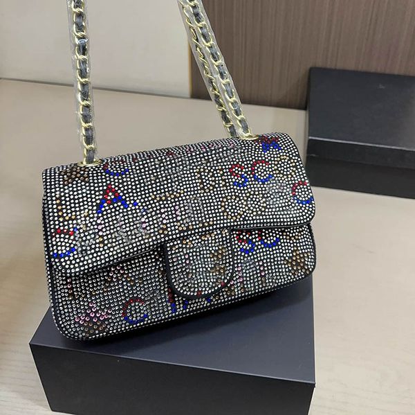 Ladies Designer Flap Bag Colored Diamonds Two-tone Letters Star Pattern Shiny Evening Tote Golden Hardware Shoulder Chain Luxury Wallet Crossbody Handbag 22cm