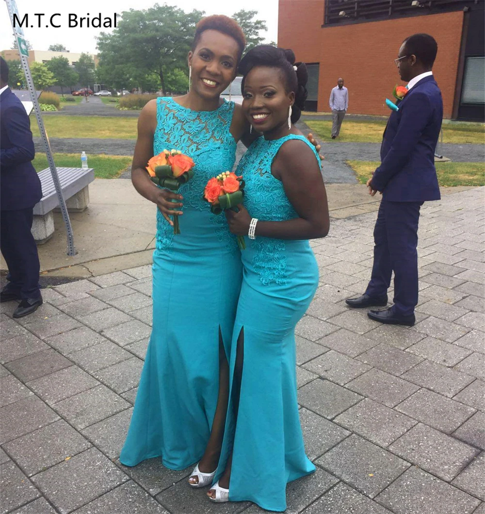 Light Blue Mermaid 2024 African Bridesmaid Dresses High Quality Lace Satin Maids Of Honor Gowns For Wedding Party