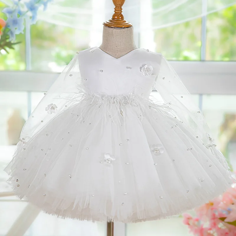 Light luxury long sleeve tulle baby dress, one year dress suitable for a variety of special occasions high-end dress