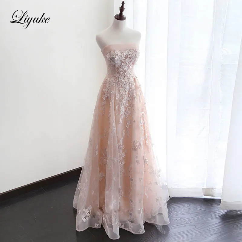 Liyuke Custom Made Strapless Sleeveless A-Line Mother of the bride dress With Beading Pearls Sequined With Flower Formal Dress