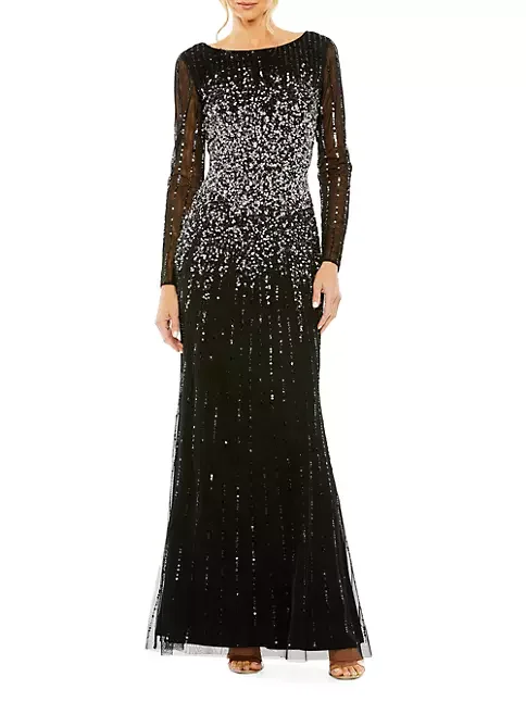 Long Dresses For Women Sequined Long Sleeve Side Slit Glitter Sparkly Sequin Maxi Dress Elegant Party Dress For Women 2024