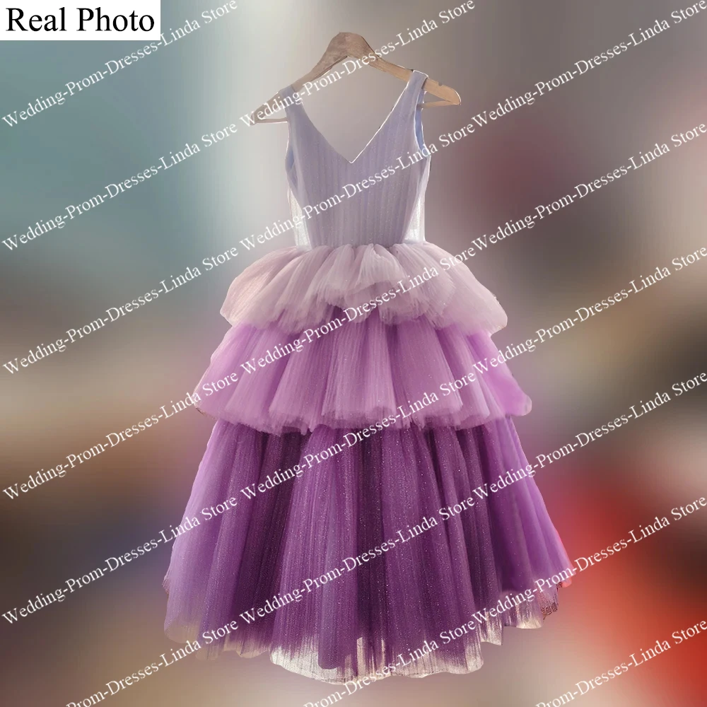 Long Shiny Purple Flower Girls’ Dresses for Weddings Party Gala V-Neck Backless Floor-Length Kid’s Princess Ball Gown 2023 New