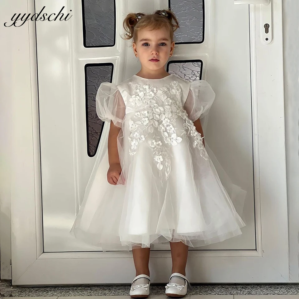 Lovely Baby Girl’s Dress Puffy Sleeves Flower Girl Dresses 2025 Princess Pearls Beading Appliques Kid Party First Communion Gown