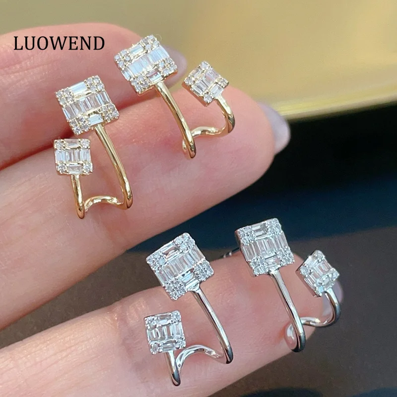 LUOWEND 100% 18K White/Yellow Gold Earrings Fashion Design 0.28carat Real Natural Diamond Stud Earrings for Women Birthday Gift