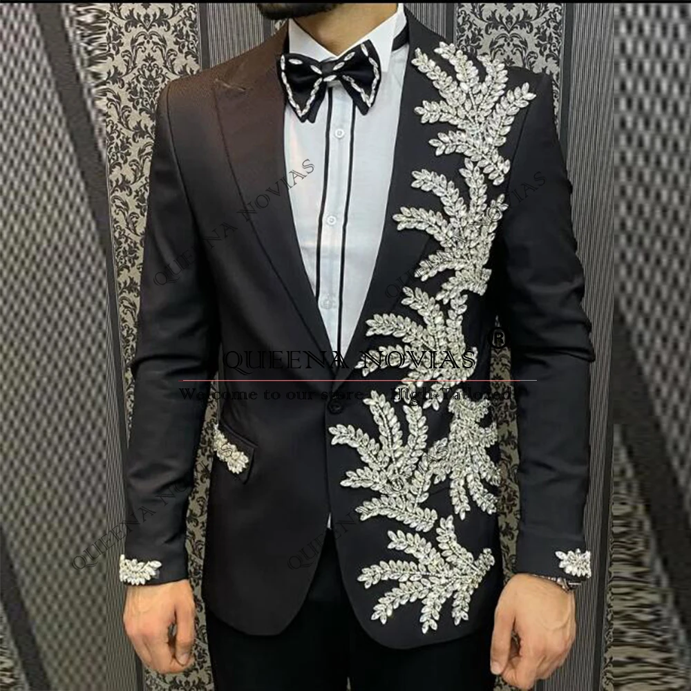 Mens Suit Slim Fit Tailor-Made 2 Piece Handmade Beads Diamond Suit Jacket Pants Customized Wedding Formal Occasions Groom Tuxedo