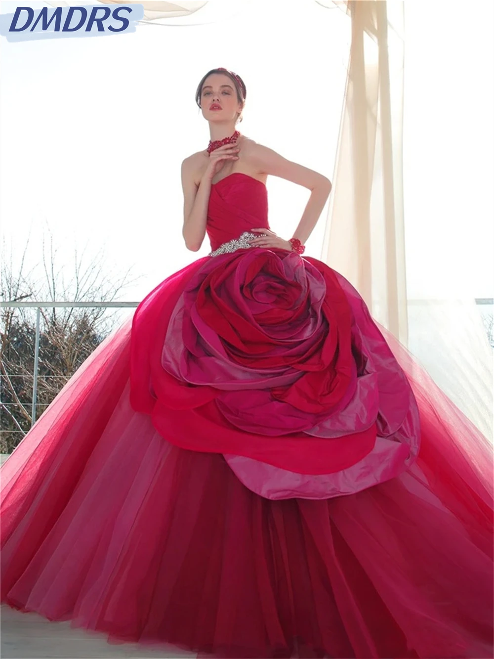 Luxurious Sleeveless Evening Dresses 2024 Charming 3D Floral Bride Gown Classic Strapless Prom Dress Vestidos De Novia