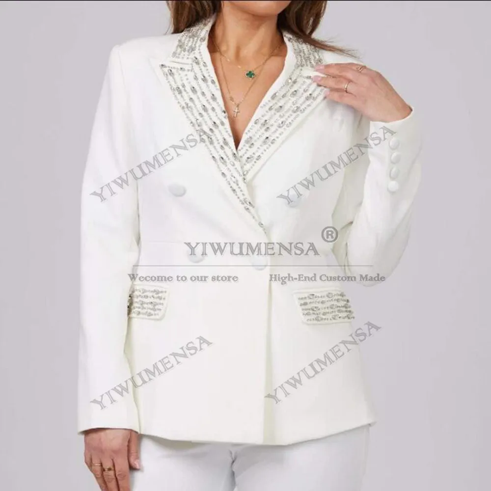 Luxury Beads Stoned Suits Women For Wedding Customized Double Breasted Jacket Pants 2 Pieces Sets Mother Of Bride Dresses 2025