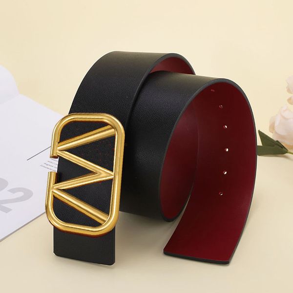 Luxury Belt Fashion Woman Wide Belts Solid Genuine Leather Elegant Letters Smooth Buckle 4 Color width 7.0cm