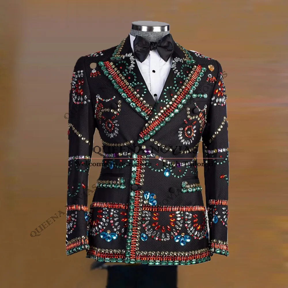Luxury Groom Wedding Suits Rhinestones Beaded Blazers Customized 2-Pieces Sets Man Tuxedos Banquet Dresses trajes para hombre