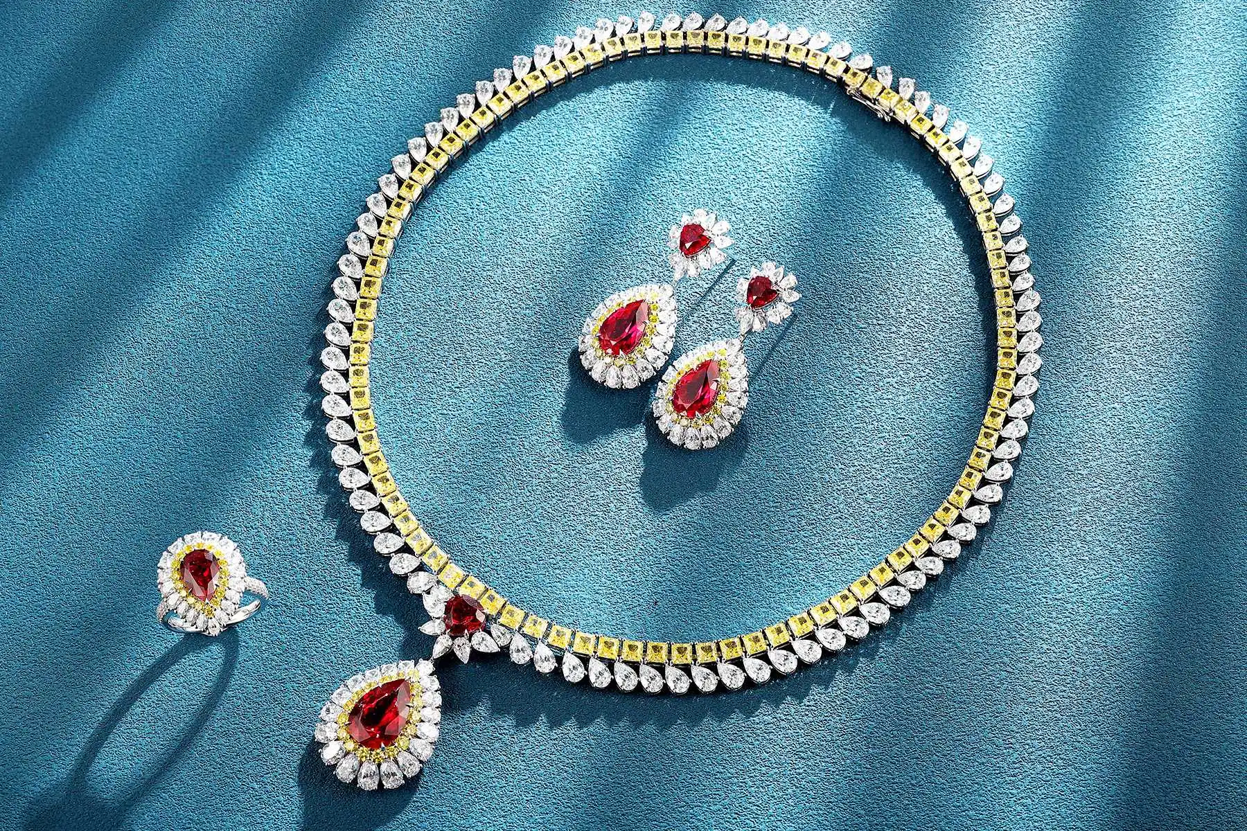 Item: Luxury Jewelry Sets for Women Rings Necklace Earrings Lab Grown Ruby 925 Silver Bridal Jewelry Set Engagement Wedding Gift
