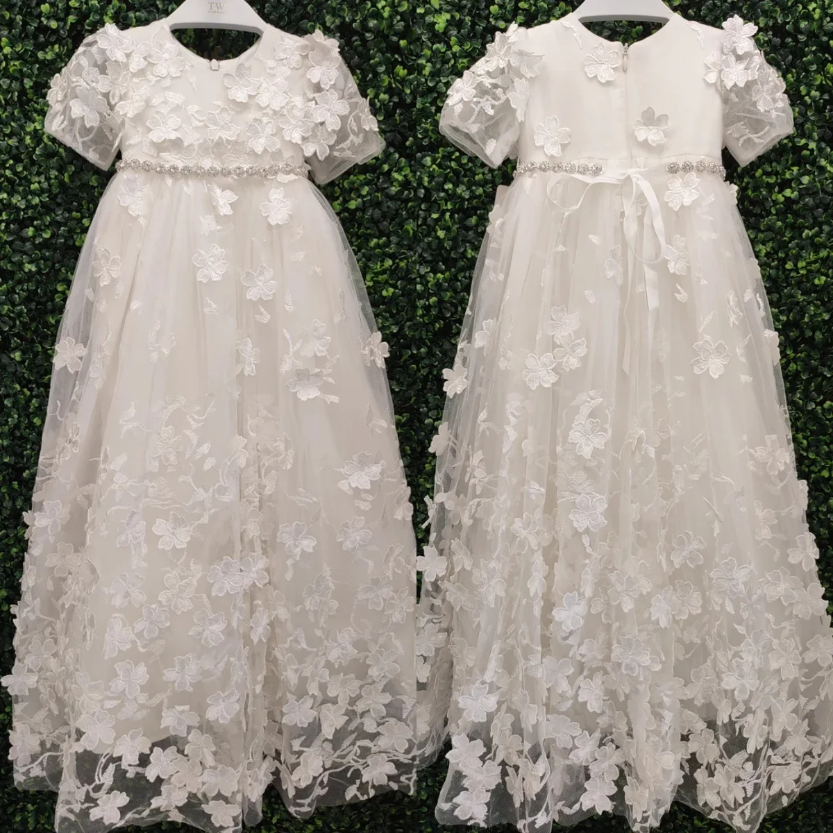 Luxury Lace Baby Christening Gowns Appliques Crystal Sash Girls Baptism Customized Newborn Kids Birthday First Communion Dresses