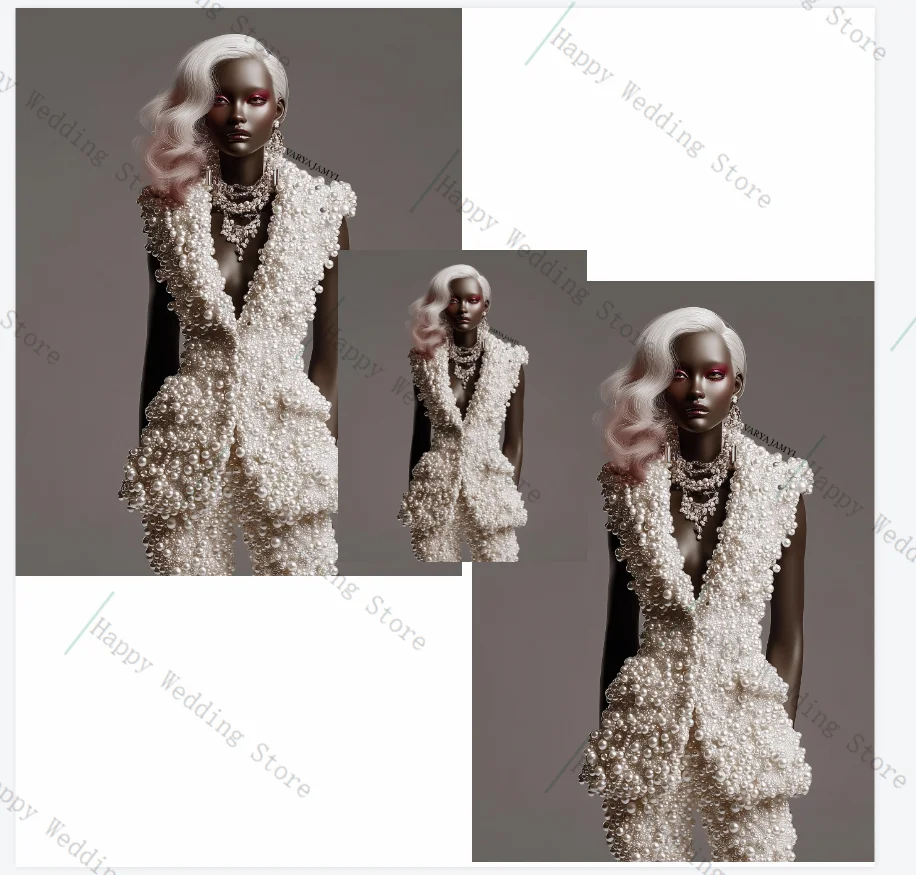 Luxury Pearls Women Suit Set 2 Piece Vest+Pants Trousers Cotton Formal Office Lady Customized Wedding Tuxedos(No Back Pearls)