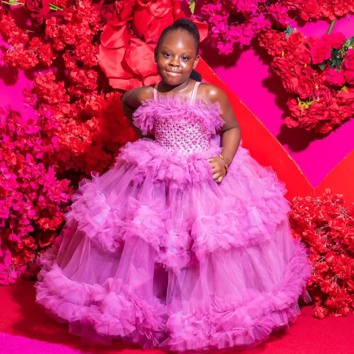 Item: Luxury Pink Girls Birthday Party Dresses Beaded Ruffles Princess Flower Girl Dresses Baby Kids Ball Gowns for Photo Shoot