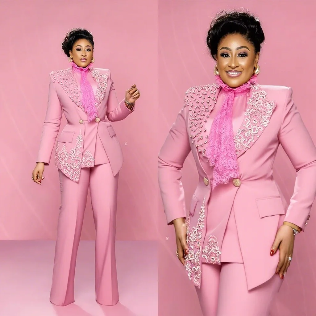 Luxury Wedding Women Suit Set Blazer Straight Pants 2 Pieces Crystal Satin Coat Formal Prom Dress Custom Made Outfit