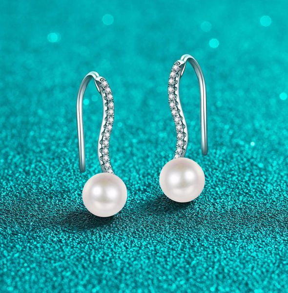 Luxury Women's Wavy Patterned S925 Silver Earrings Featuring Real Moissanites and Cultured Pearls