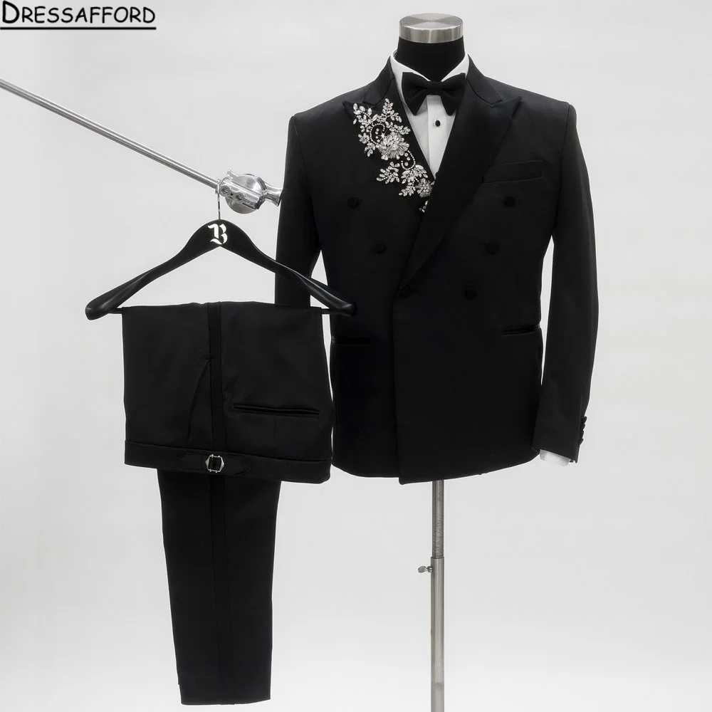Luxury Appliques Men Suits Customized Groom Wedding Party Tuxedos 2 Pieces Sets Slim Fit Male Blazes Fashion Costumes Homme
