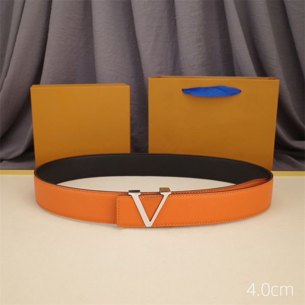 Men Designer Belt Classic Belts For Women Fashion Casual Letter V Silver Smooth Buckle Leather Belt Width 4cm Ceinture