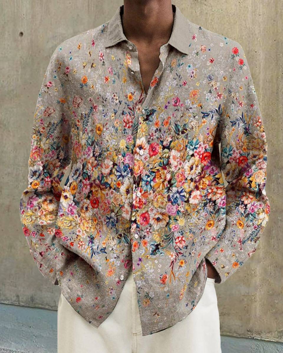 Men’s cotton&linen long-sleeved fashion casual shirt 146c