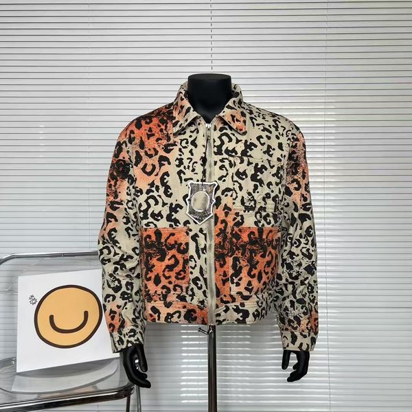 Mens Designer Brand Holiday Series Leaf and Wood Full Print Zipper workwear Short Jacket Jacket for Men and Women