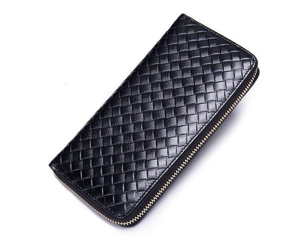 Men's Korean Woven Leather Zipper Wallets Head Layer Cowhide Wallet Long Hand Purse Wholesale 251