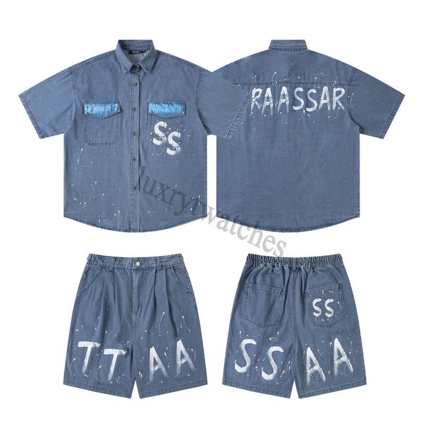 Mens Polo t shirt Designer Traapstars t shirts Womens Letter Pure Cotton shorts Printing Black White Summer Casual Short sleeve American retro denim shirt set