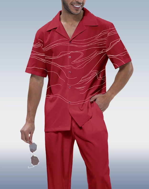 Men’s Red Art Print Short Sleeve Walking Suit for Suitmen