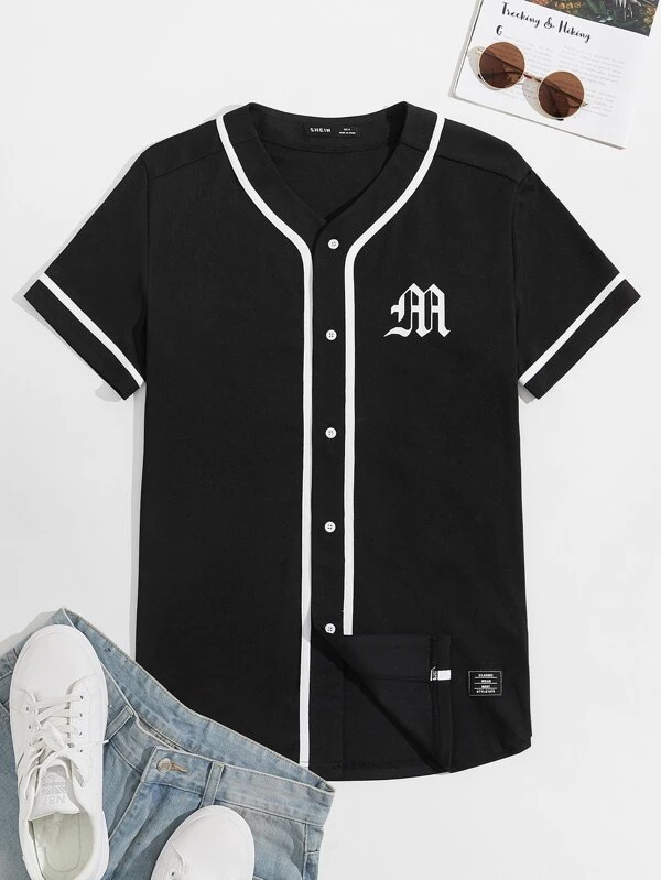 Men’s Shirt with Graphic Letters and Contrast Tape Design