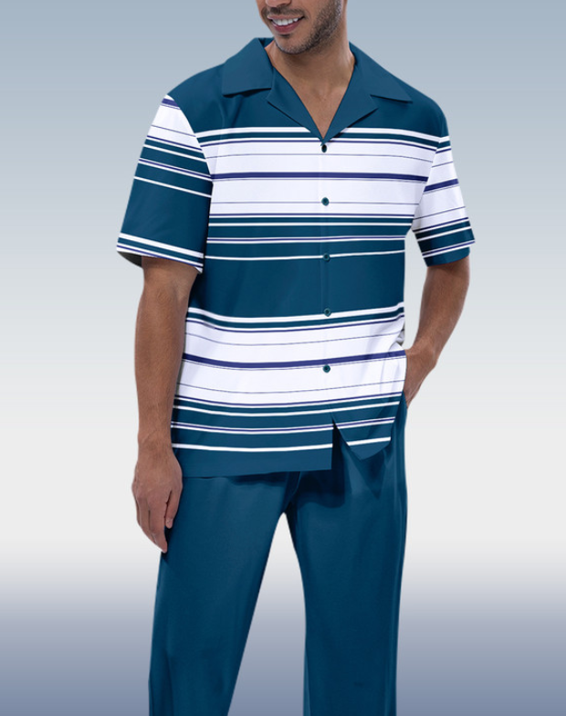 Men’s Striped Short Sleeve Two-Piece Suit by Suitmens