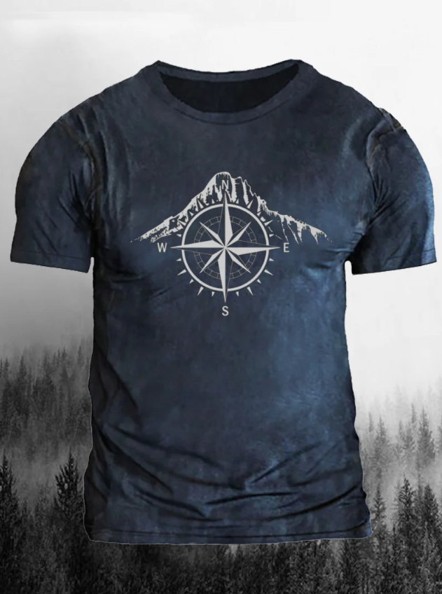 Men’s T-Shirt with Mountains and Compass Print