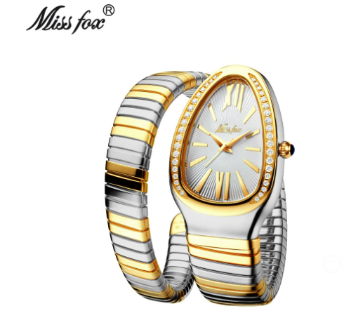 MISSFOX watch Middle East popular women’s fashion personality snake head bracelet stainless steel diamond snake watch for women