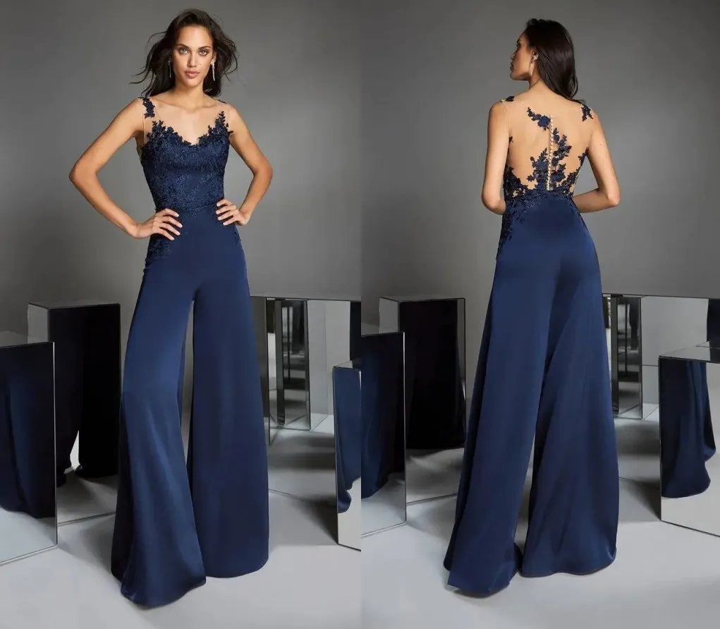 Item: Navy Blue Jumpsuits Mother of the Bride Pants Suit 2025 V Neck Lace Wedding Guest Dress Mothers of the Groom Gowns Outfit Custom