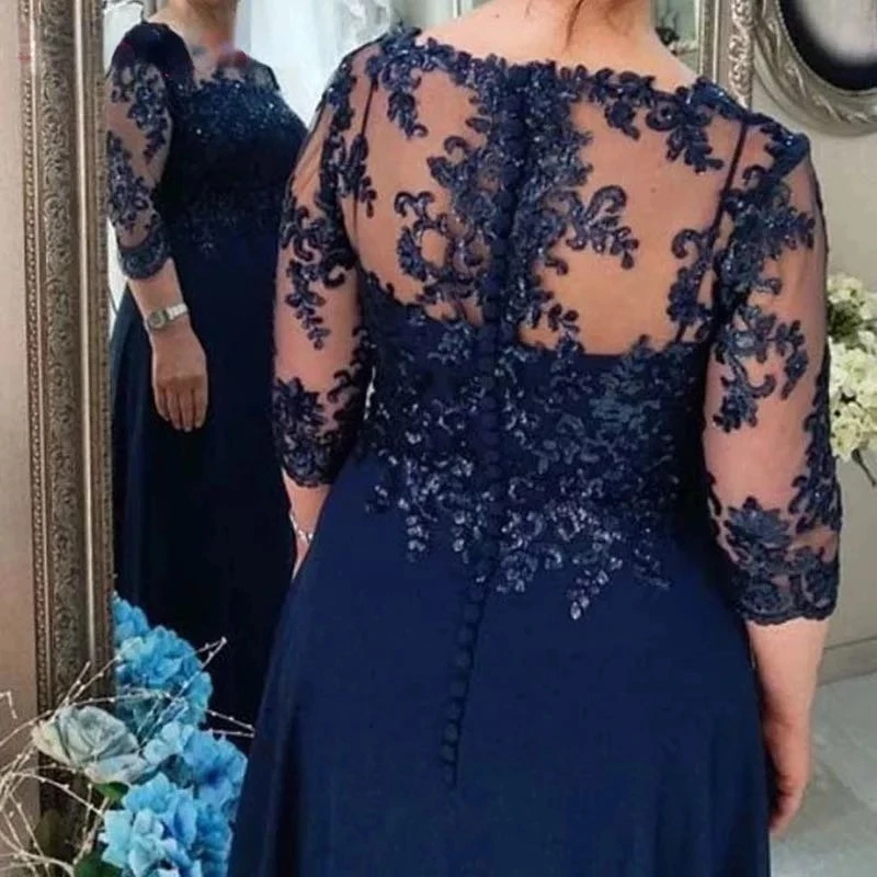 Navy Blue Lace Mother Of The Bride Dresses Half Long Sleeves Plus Size Formal Groom Mom Wedding Gowns Soft Chiffon Vestido 2025